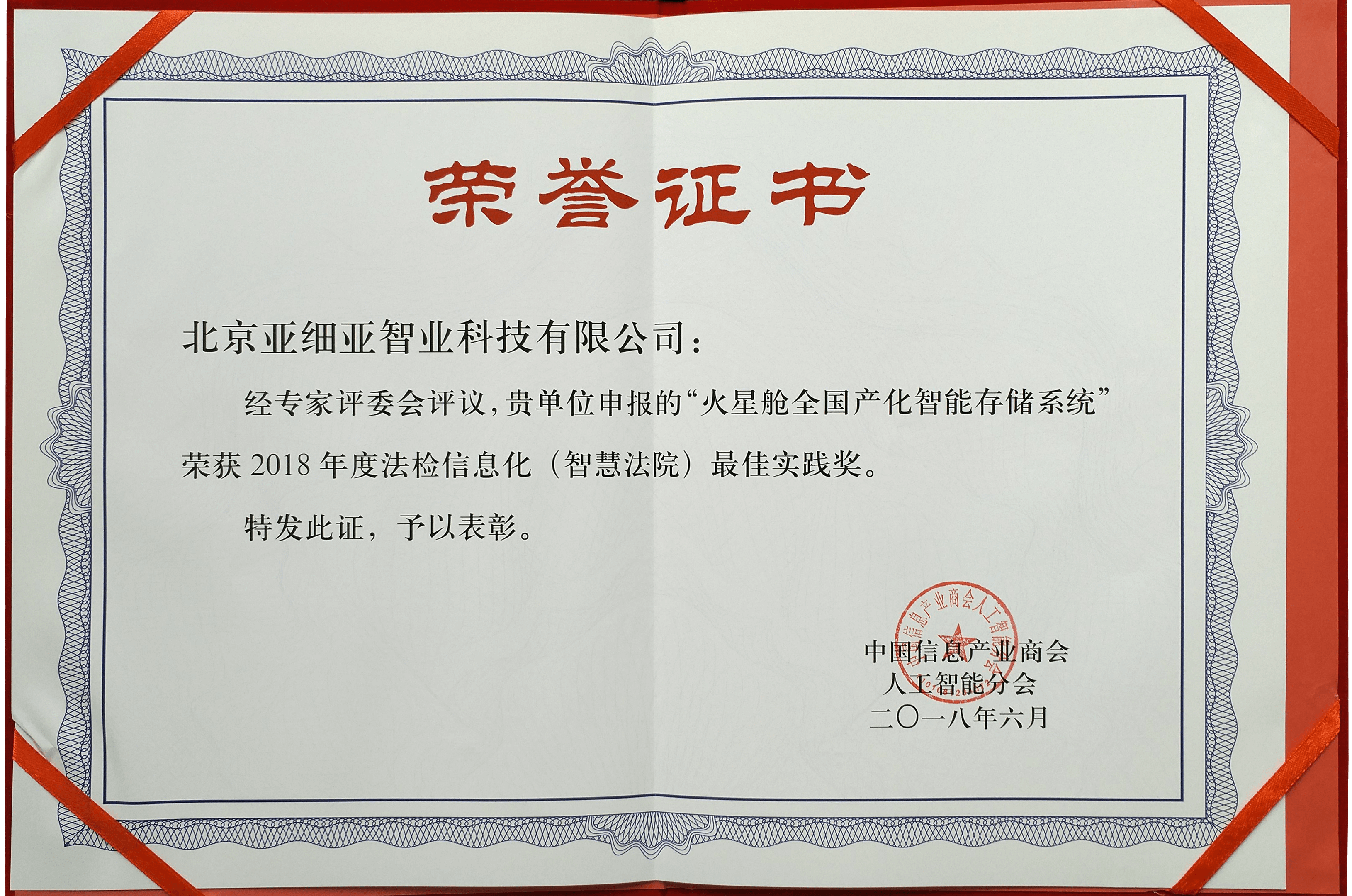 2018年度法檢信息化(智慧法院)最佳實(shí)踐獎(jiǎng)——證書