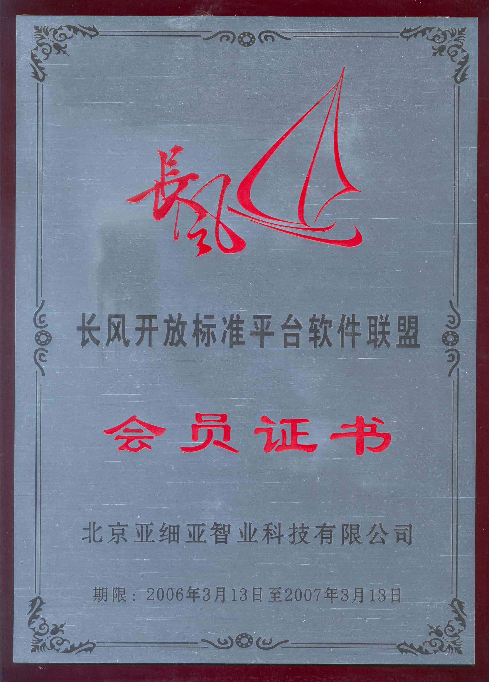 長風(fēng)會員證書